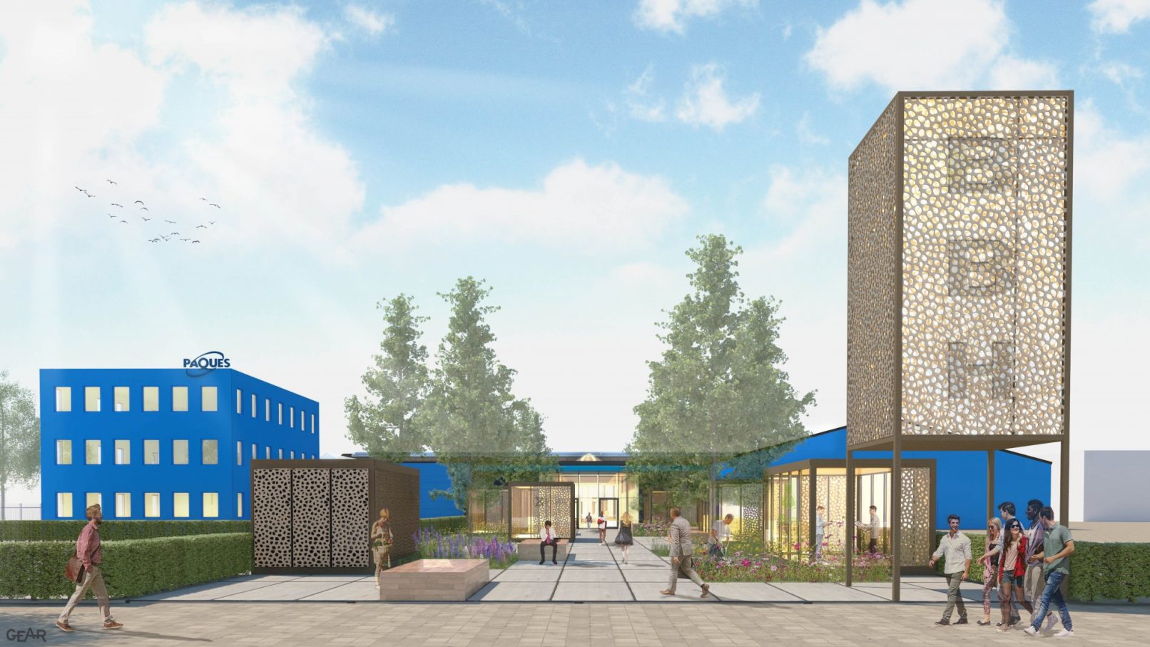 Naar ontwerp van Gear is voor Paques in Balk een BioBizzHub gerealiseerd. Een proeftuin om ‘innovators’ te ondersteunen bij het opschalen en het naar de markt brengen van innovaties op het gebied van biobased watertechnologie.