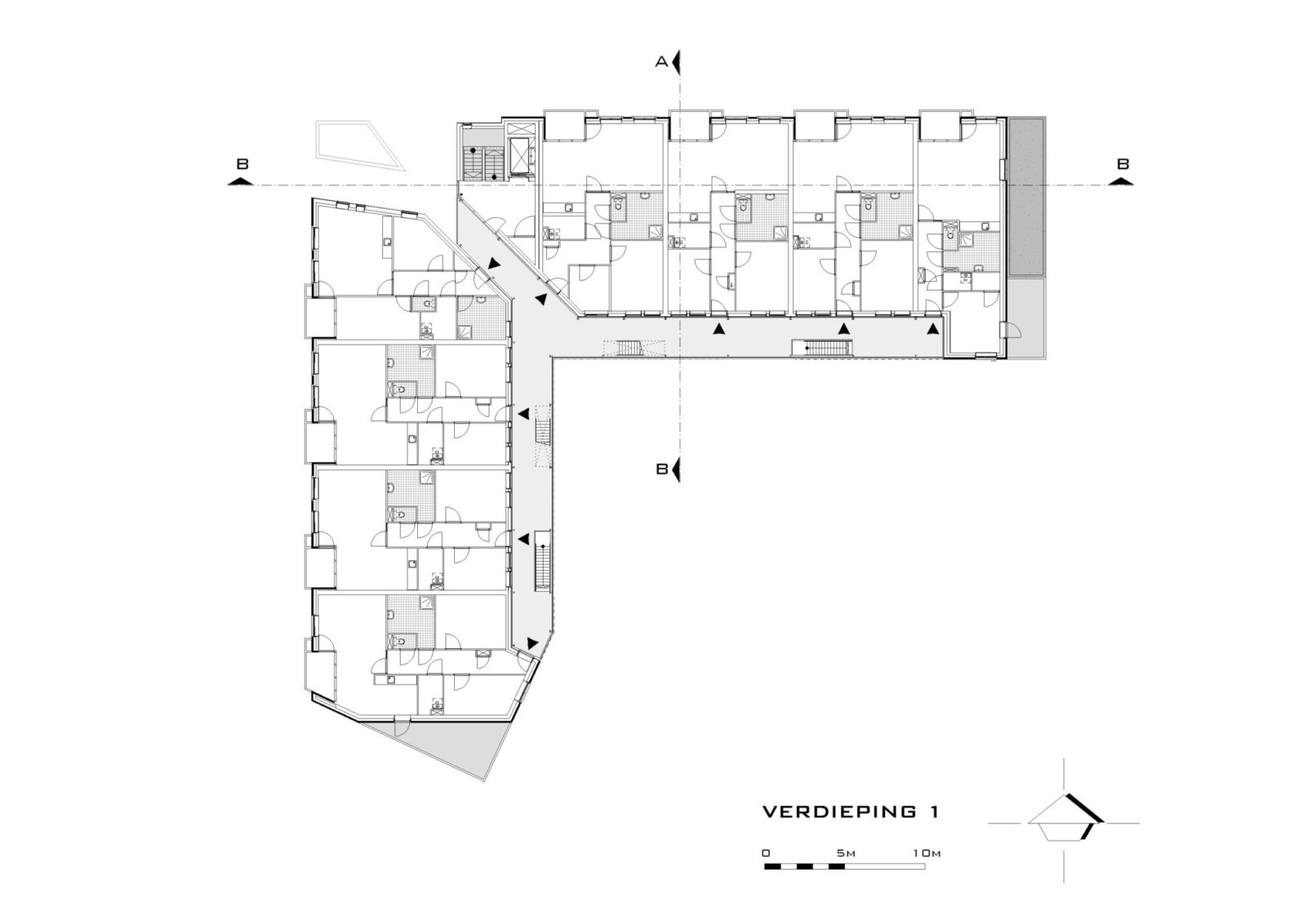 Het niveau van de woning wordt in dit project niet los gezien van het geheel, zo een dorp ook functioneert. Verankeringsingrepen met de plek worden hier ingezet als middel om het nieuwe project in individuele delen, en tegelijk als geheel te beschouwen.