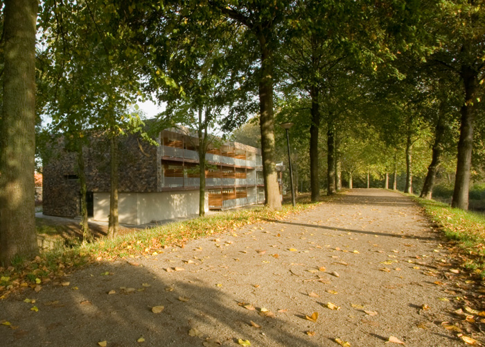 Het gebouw heeft ook een stadzijde die een ander karakter heeft en robuuster is gematerialiseerd. De woningen en de centrale woonkamers zijn georiënteerd op de beschutte parkzijde van het bolwerk, terwijl de brede verkeersruimte zich aan de stedelijke kant van het complex bevindt; de kant waar ontmoeting ruimte krijgt. De groene omgeving biedt de nodige rust. Hier is gekozen voor een passende houten gevelbekleding. De houten balkons hangen als “hangmatten” in het groen van het parkachtige gebied.