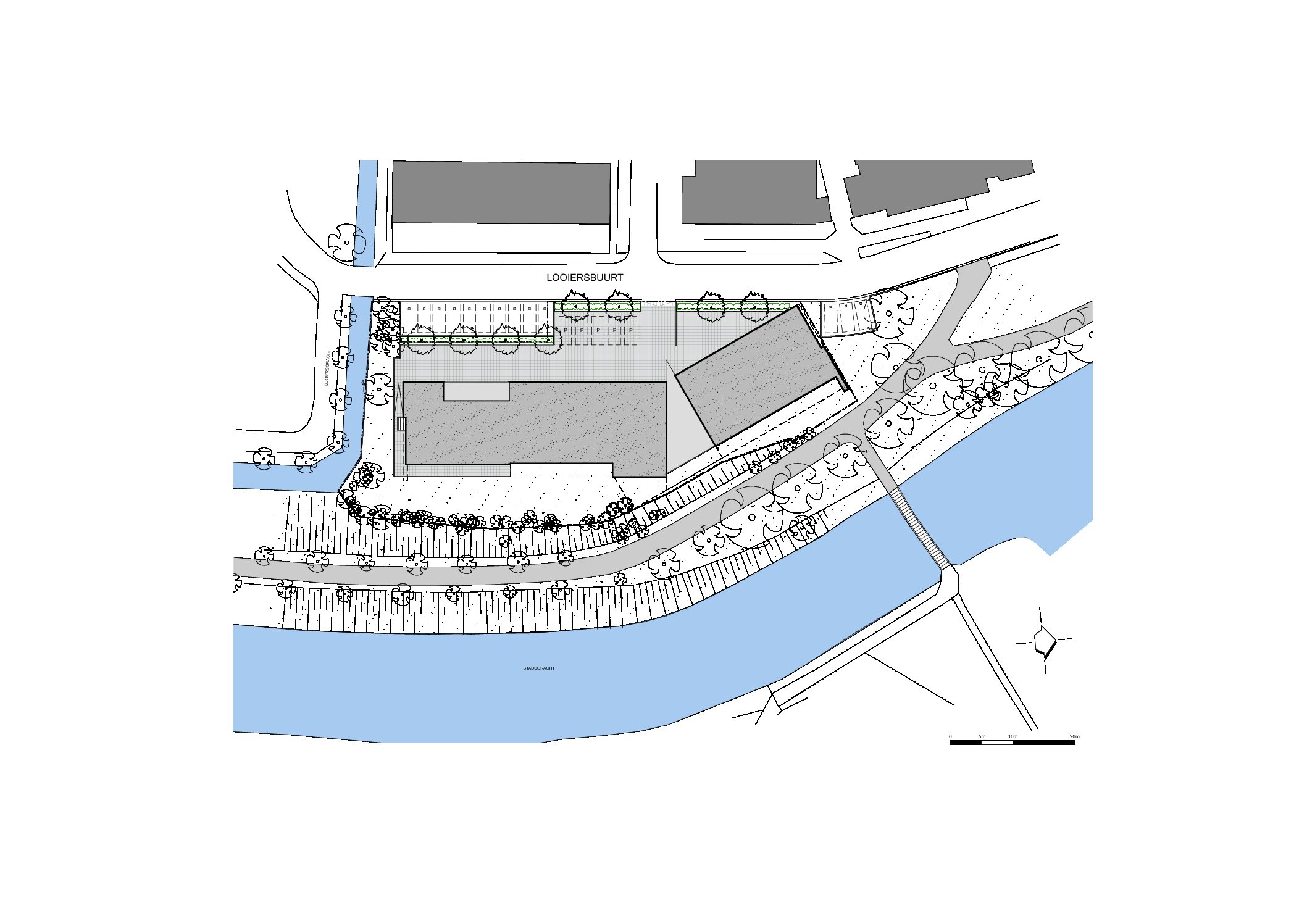 Het woonblok is gesitueerd direct achter de oorspronkelijke “bolwerken” die rondom de oude binnenstad van Bolsward lopen. De hoofdvorm van het woonblok knikt mee met de autonome vorm van het bolwerk. Door de vertrapping die is aangebracht in het bouwvolume, volgt het gebouw het hoogteverschil van het bolwerk. Het gebouw vormt zo een sterk begrijpelijk onderdeel van de context, met twee keer een verspringing van een woonlaag. Daar waar het bolwerk enkele meters hoog is, zijn de bergingen gesitueerd. Hierboven bevinden zich de woonkamers met balkons die over de oude verdedigingswal met wandelroute uitkijken. Men woont tussen het groen van de bomen van dit parkachtige wandelgebied.