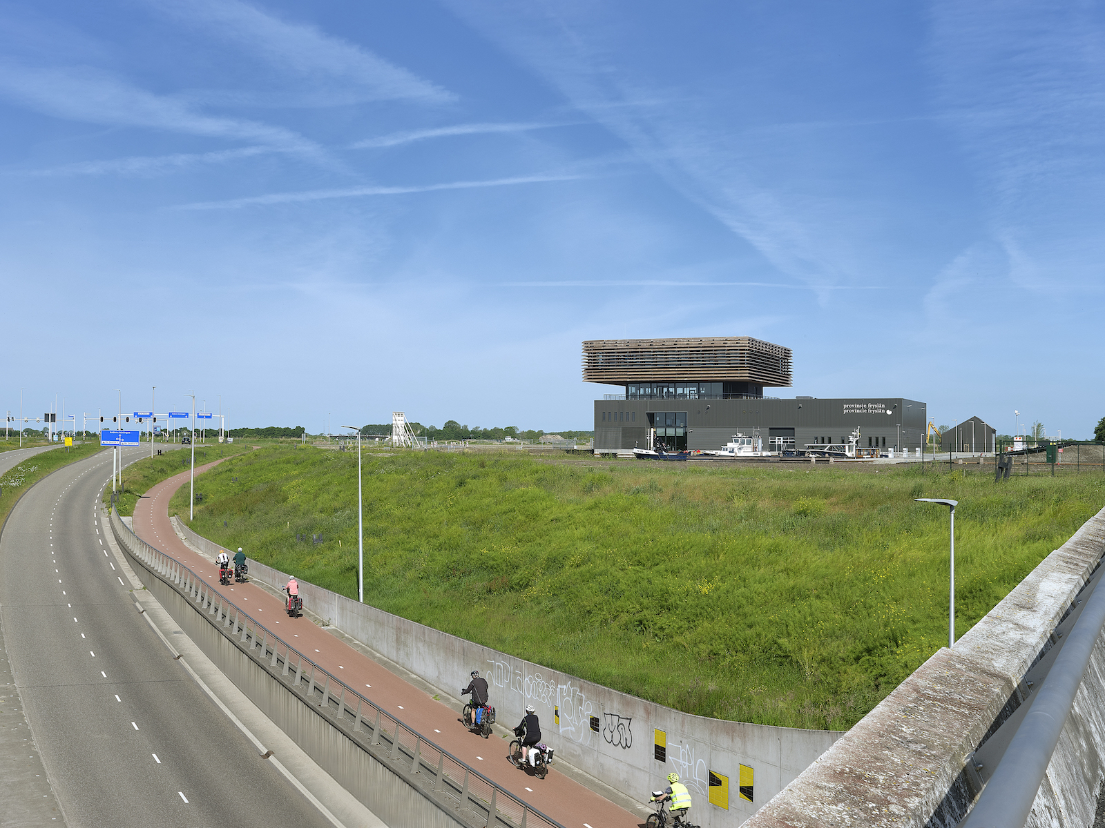 Het ontwerpteam voor de nieuwbouw van dit circulair brugbedieningscentrum bestaat uit GEAR architectencoöperatie, Bouwgroep Dijkstra Draisma, Sweco, ITBB, de Waard en Donkergroen, in opdracht van de provincie Fryslân.