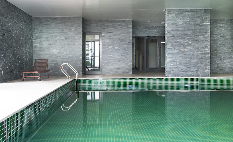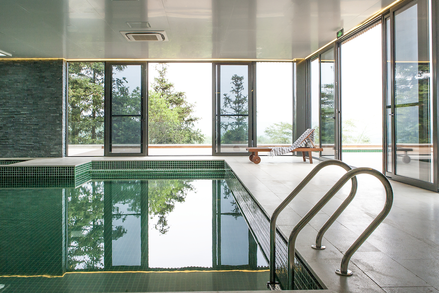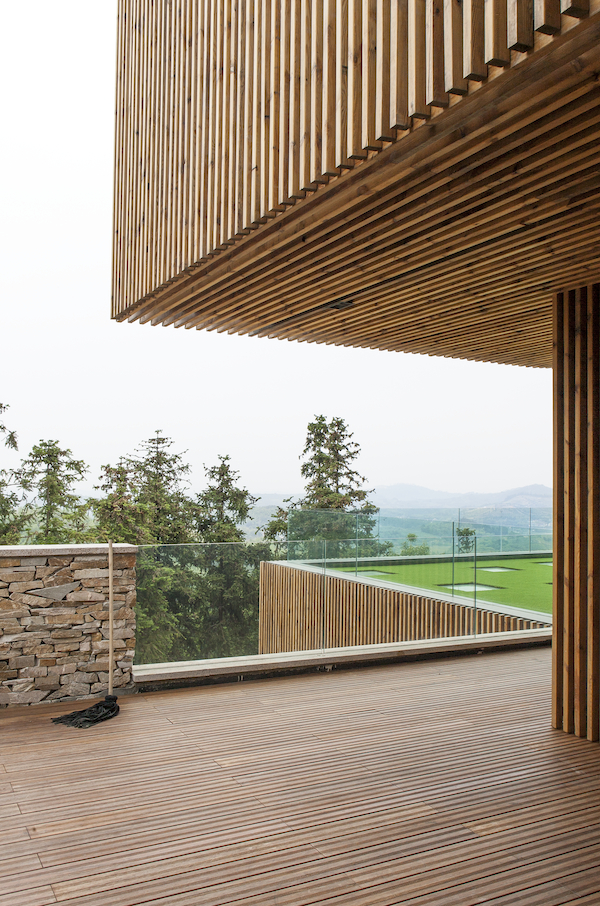 Het spa-clubhuis is zo ontworpen dat verschillende functies logisch georganiseerd zijn rondom een kern van trappen, zodanig dat iedere functie een uniek en verrassend panorama krijgt op de omgeving. Zo kan op verschillende momenten van de dag functie-afhankelijk van ochtend-, middag- of avondzon genoten worden. Deze uitgangspunten, gecombineerd met een bergachtige natuurlijke omgeving, geven spannende verspringende en uitkragende volumes met vensters op verrassende plekken. Iedere publieke functie, maar ook de privé massage ruimtes grenzen aan een terras met uitzicht.