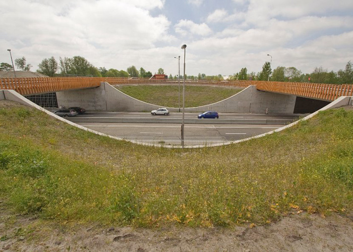 Belangrijk is de zorgvuldige aandacht voor de ecologische hoofdstructuur. Door de taluds en de verticale wanden te laten begroeiien is een groen kruispunt ontstaan waarbij niet alleen fietsers, voetgangers en gemotoriseerd verkeer elkaar kruisen, maar ook flora en fauna. De begroeide wanden passen in het beeld van de houten ‘ring’ van Accoya en hebben een relatie met beide houten bruggen.