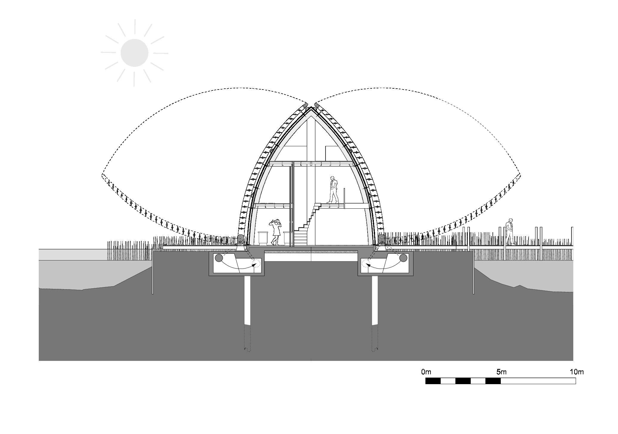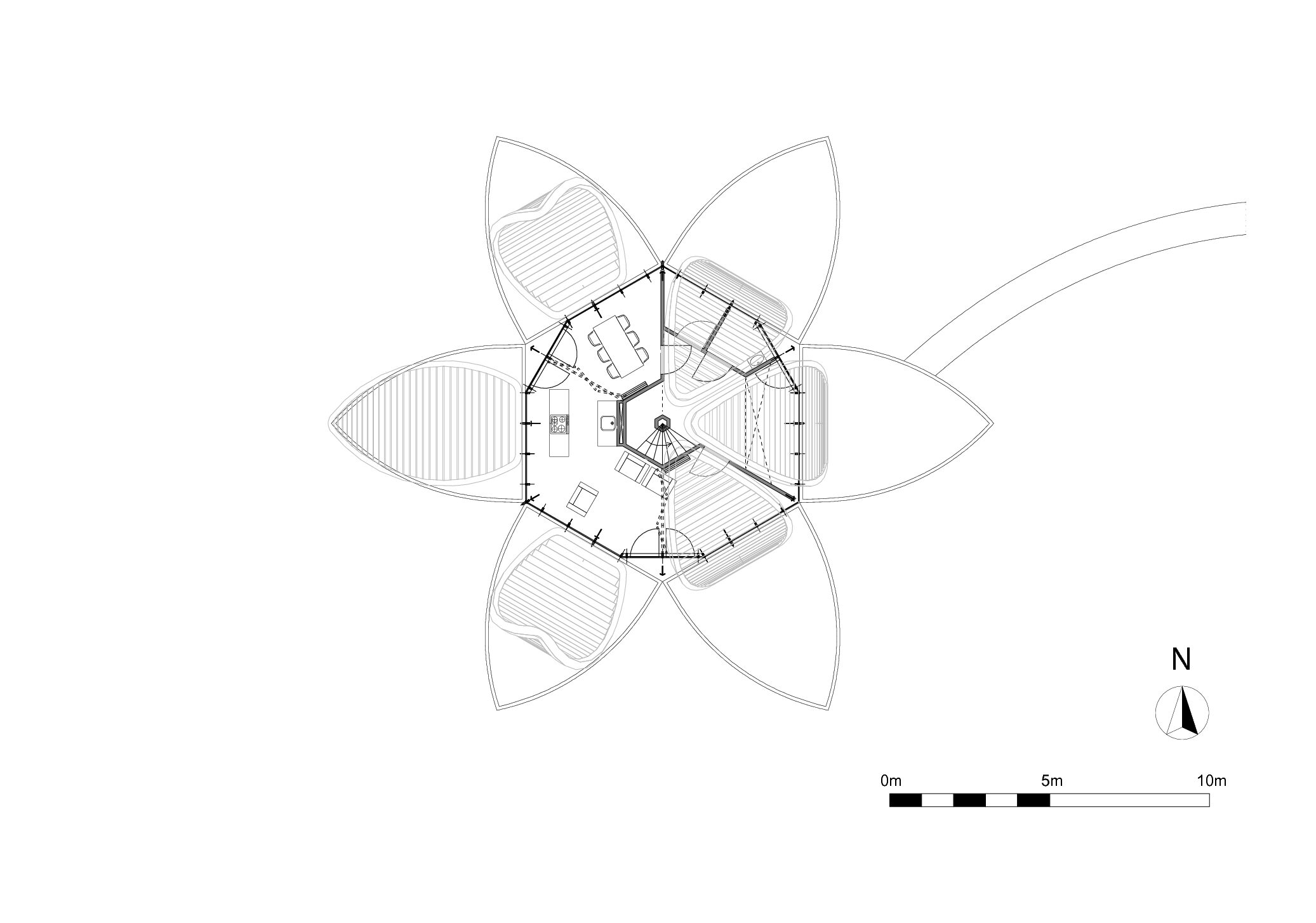 De natuurlijke elementen spelen een hoofdrol in de energie-opwekking, koeling en verwarming van de woningen, maar ook hergebruik door middel van natuurlijke zuivering. Dit verklaart de samenwerking met Ekwadraat en Wetsus, die verregaande kennis hebben op dit gebied. De hoofdvorm van de woning is geïnspireerd op de natuur. Omdat water een hoofdrol speelt bij een duurzame woning ligt het voor de hand om drijvende woningen te maken. De lotus heeft niet alleen een symbolische betekenis van reinheid en schoonheid in China, maar heeft ook een zuiverende werking op water. De hoofdvorm is gebaseerd op de lotus met een kelk als hart van de woning en daaromheen bladeren die niet alleen een beschermende functie hebben, maar de natuurlijke energiebronnen toelaten waar deze gewenst zijn. Zo zijn er beweegbare delen die de zon sturen, en vaste bladeren die als waterfilters dienen of groei van allerlei planten mogelijk maken en zo een zuiverende werking hebben. De woning is zo ontworpen dat het in de hete Chinese zomer in zijn eigen schaduw staat, tegelijk zon opvangt en warmte vasthoudt in de nacht door de bladeren weer te sluiten.