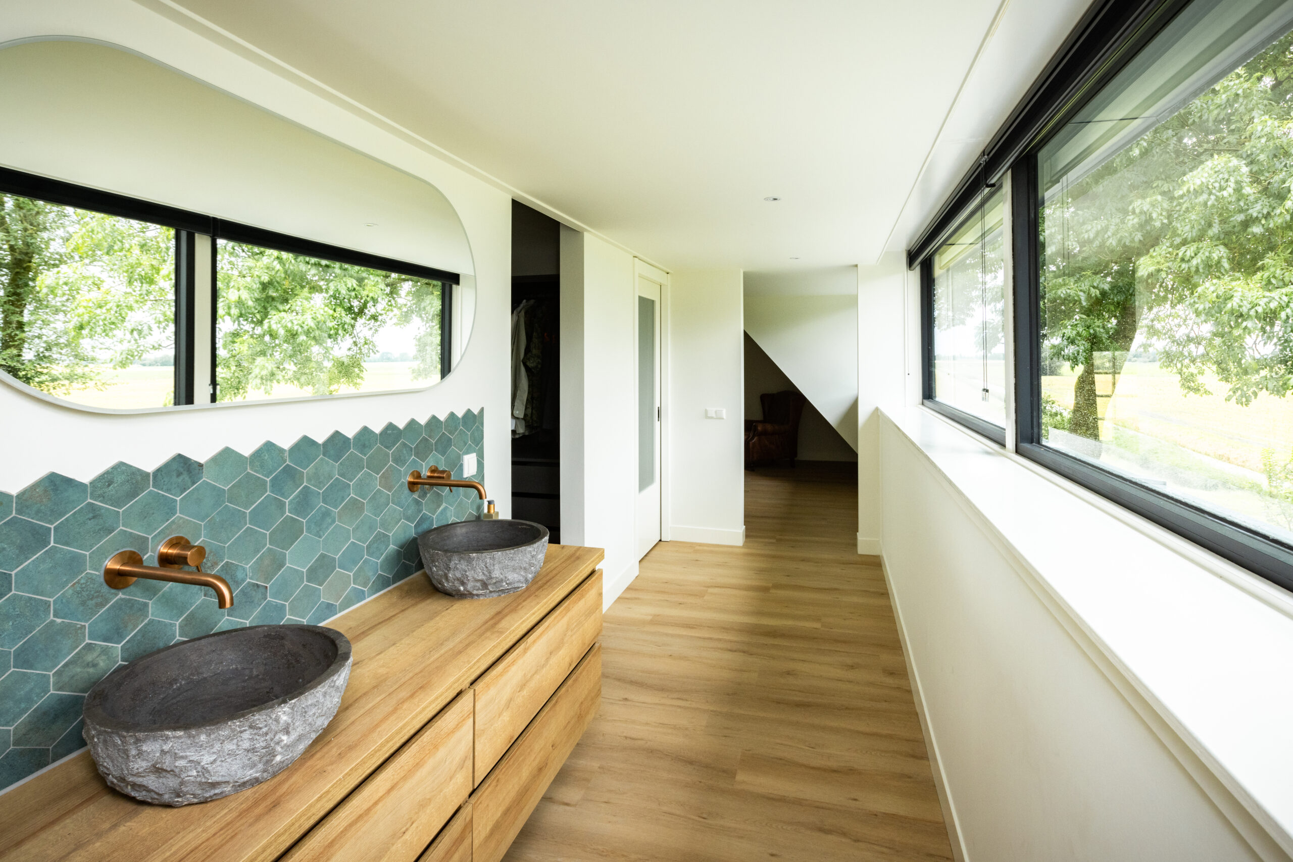 De functies zijn rondom de kern gesitueerd, wat heeft geleid tot een open, luchtige en ruimtelijke plattegrond met een interessante routing. De zichtlijnen naar het omliggende landschap hebben hierin centraal gestaan. De boerderij is volledig gemoderniseerd en verduurzaamd en voldoet daarmee aan de comforteisen van een nieuwbouwwoning.