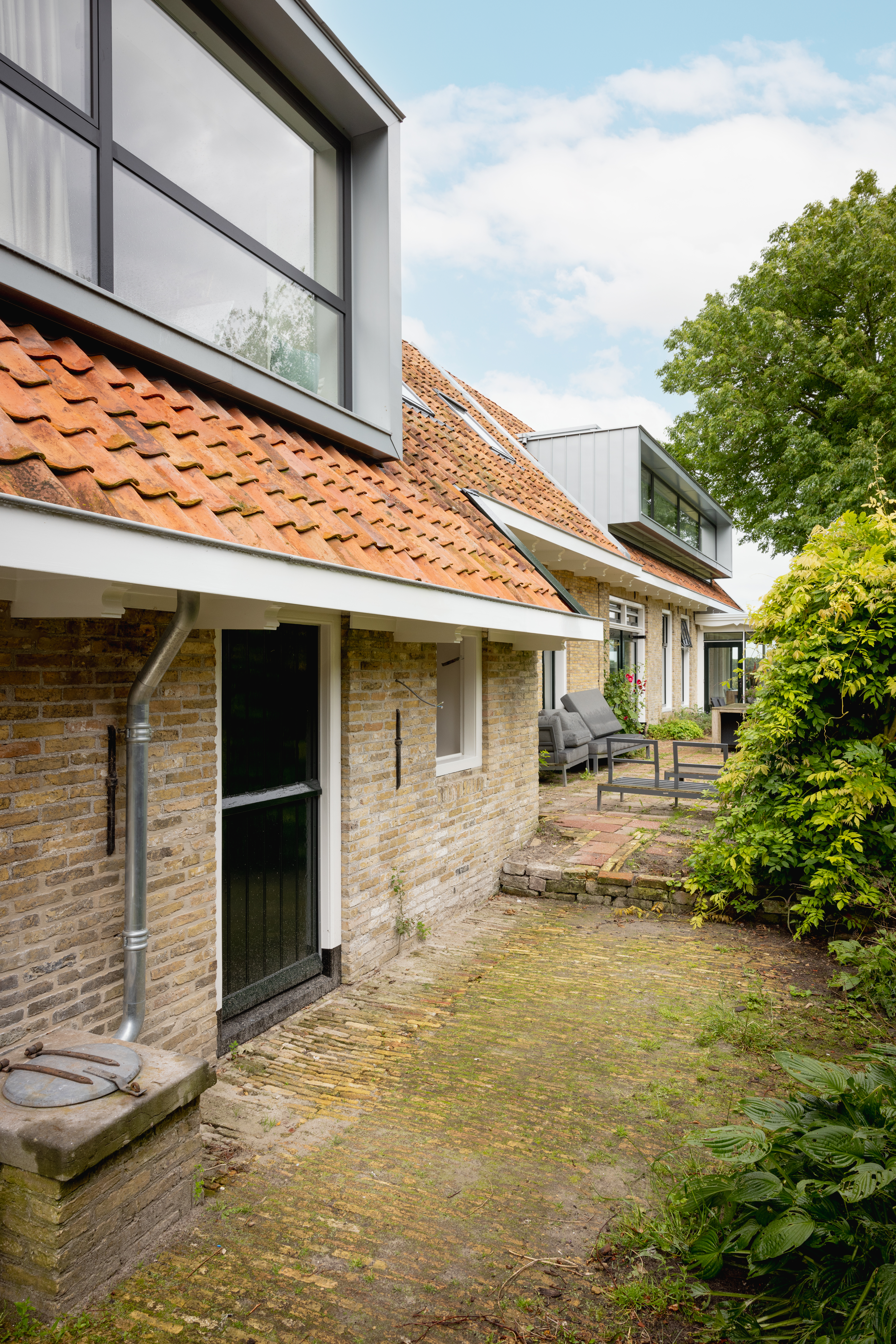 Om aan het programma van eisen te voldoen, zijn drie grote, contrasterende dakkapellen toegevoegd. Op de bovenverdieping zijn drie ruime slaapkamers, twee badkamers, een werkkamer, een toilet, een ruime overloop en een vide gerealiseerd. Naast deze drie duidelijk zichtbare ingrepen is op subtiel niveau gewerkt om optimaal gebruik te maken van de beschikbare ruimte. Zo is het dak vernieuwd, waarbij de isolatie aan de buitenzijde van de bestaande constructie is aangebracht. Hierdoor is onder de kap extra hoogte ontstaan.