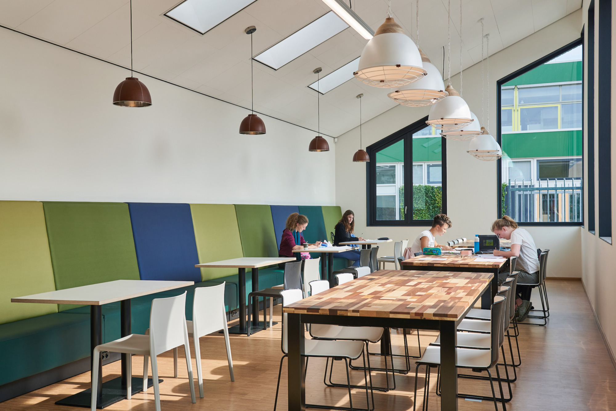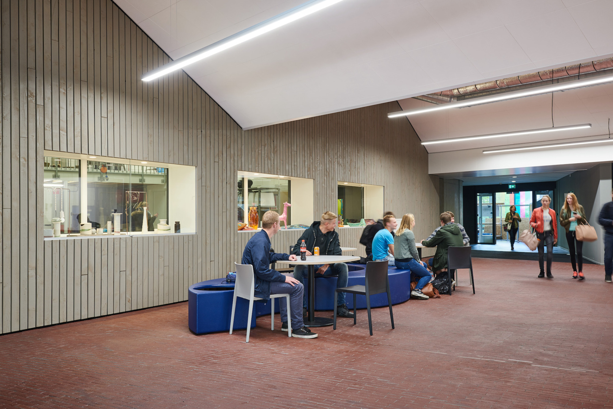 Het interieur regeert hier ook op en is een doorvertaling van de wens om hier weer meer samenhang, herkenbaarheid en vooral studieruimte te bieden aan de studenten.