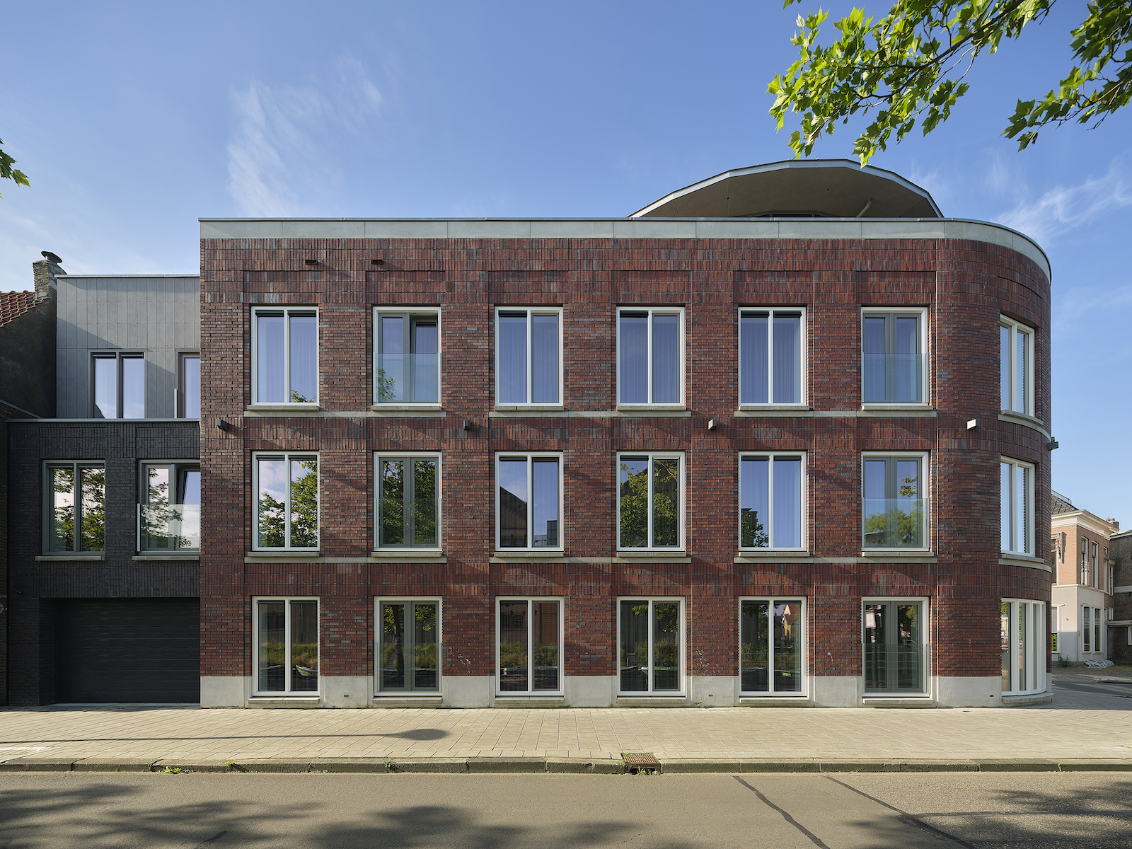 De hoek locatie Zuidergrachtswal-Achter de Hoven is prachtig gelegen aan de rand van het centrum. Beide straten refereren aan een stuk geschiedenis van de stad. Met dit plan wordt het straatbeeld in de ronding van de kavel ‘afgemaakt’. Met een bescheiden esthetiek, proporties en ritmiek wordt aansluiting gevonden bij het beeld van historische panden aan de kade. Een verbijzondering op het dak verwijst naar koepels in de binnenstad, die voor een deel de skyline van Leeuwarden bepalen. Horizontale banden van terug gedetailleerde baksteen wisselen ritmisch af met verticale gevelopeningen, voor optimaal licht en zicht; allen voorzien van een Frans balkon. Het gebouw trapt af om aansluiting te vinden bij de lagere bebouwing in beide straten.