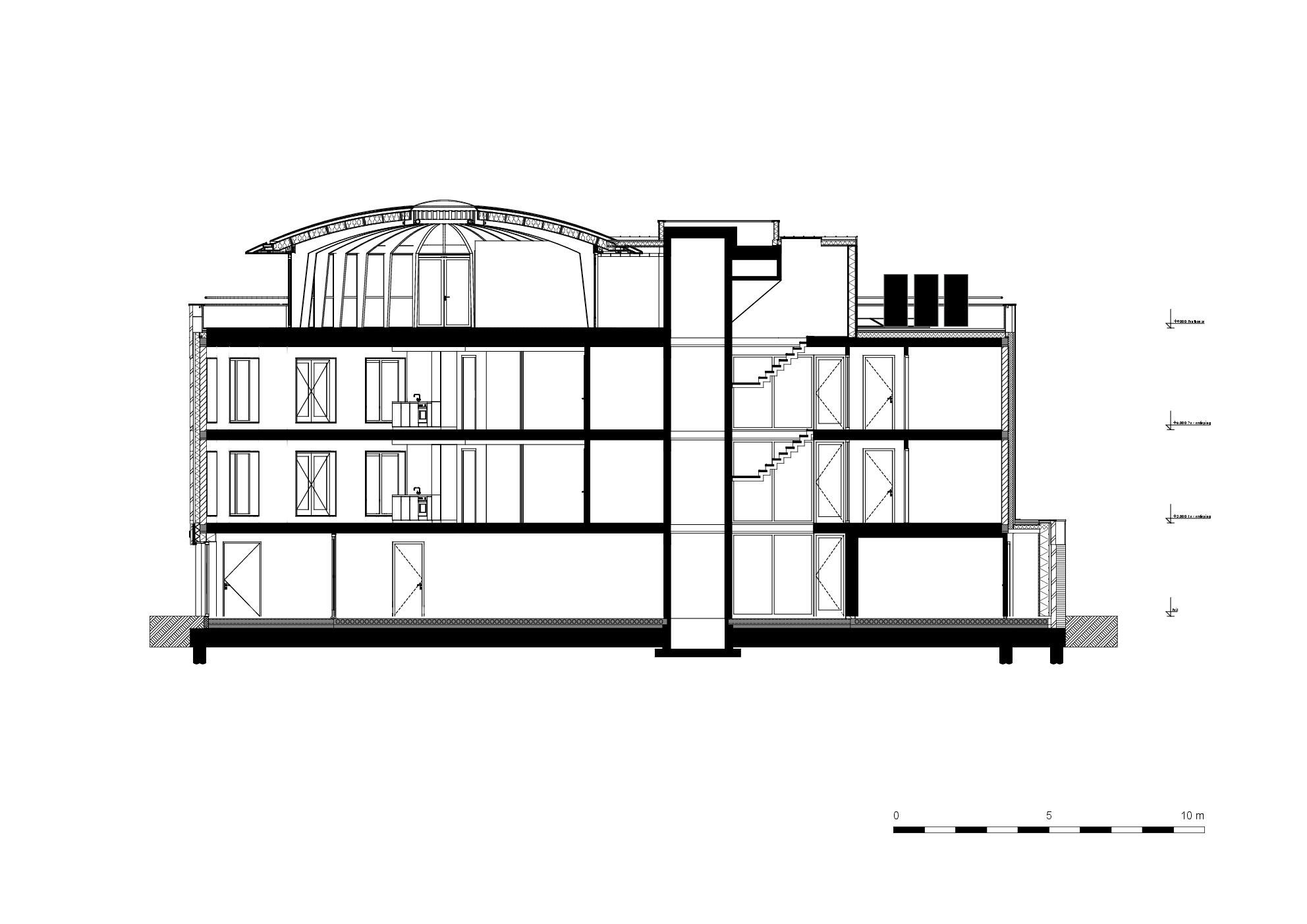 De hoofdontsluiting van de appartementen bevindt zich aan de achterzijde. In de plint, die analogie vertoont met de klassieke ordening van de herenhuizen langs de Willemskade, zal commerciële ruimte komen. De gracht voorziet het gebouw van duurzame koeling en warmte. PV-panelen op het dak leveren elektriciteit.