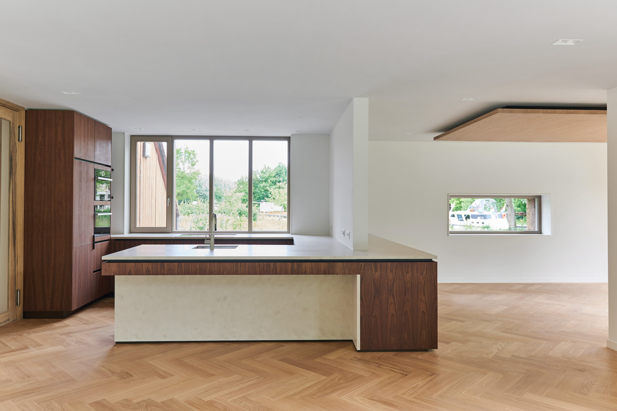 De duurzaamheid en de biobased aspecten van de woning komt duidelijk tot uiting in de zorgvuldig gekozen materialen die allemaal lokaal geproduceerd zijn door vakkundige bedrijven. Zo wordt er gebruik gemaakt van Fries riet en inlands eiken voor de vloeren en trappen. Ook de details zijn tot in de perfectie uitgewerkt: verholen goten, verdiept liggende PV panelen in het houten dakvlak en riet als ‘deken’ van het peil op het noorden tot in het schuine dakvlak op het zuiden.