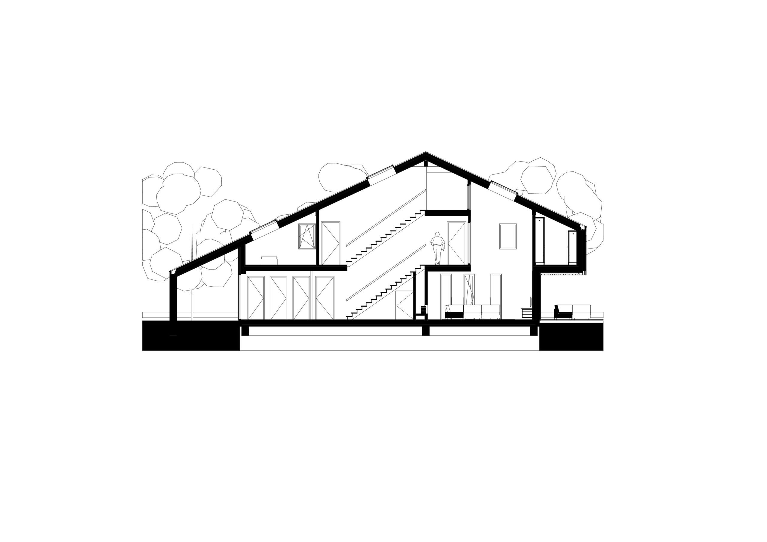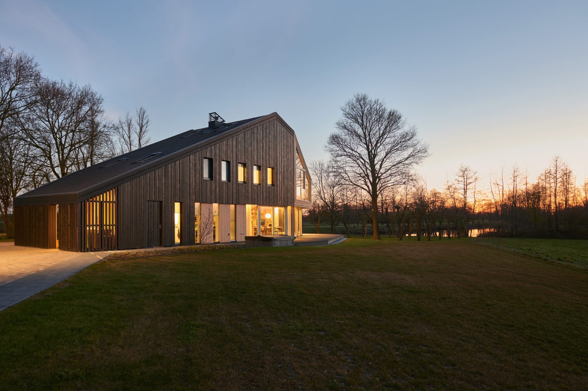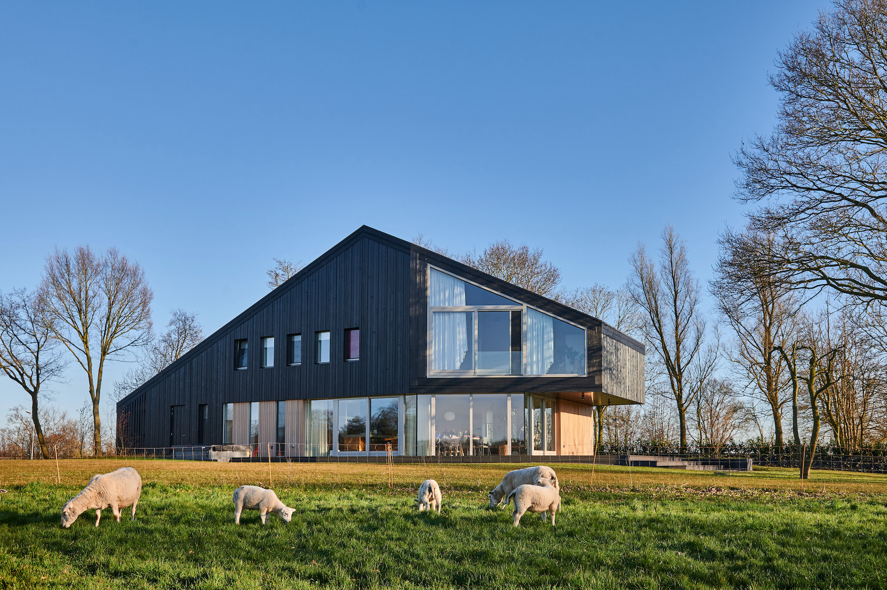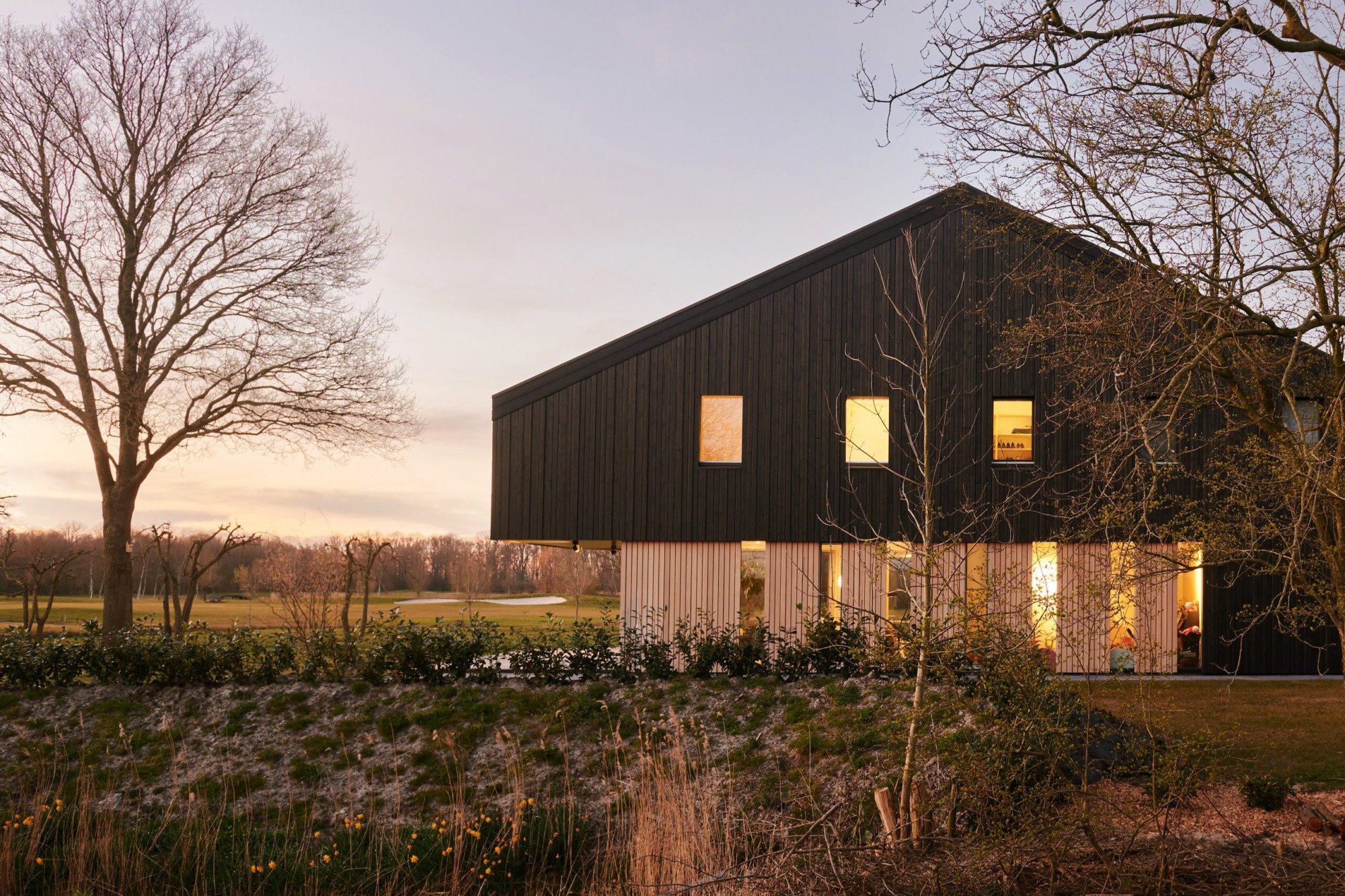 De begane grond is aan de oostzijde nagenoeg geheel opengewerkt en biedt een fantastisch zicht op de golfbaan en het bos van Ype in de verte. Juist naar de openbare weg is de woning meer gesloten om de privacy te waarborgen. De typisch kapvorm beweegt mee met het functionele interieur met een sterk oog voor duurzaamheid en circulair materiaal gebruik.
