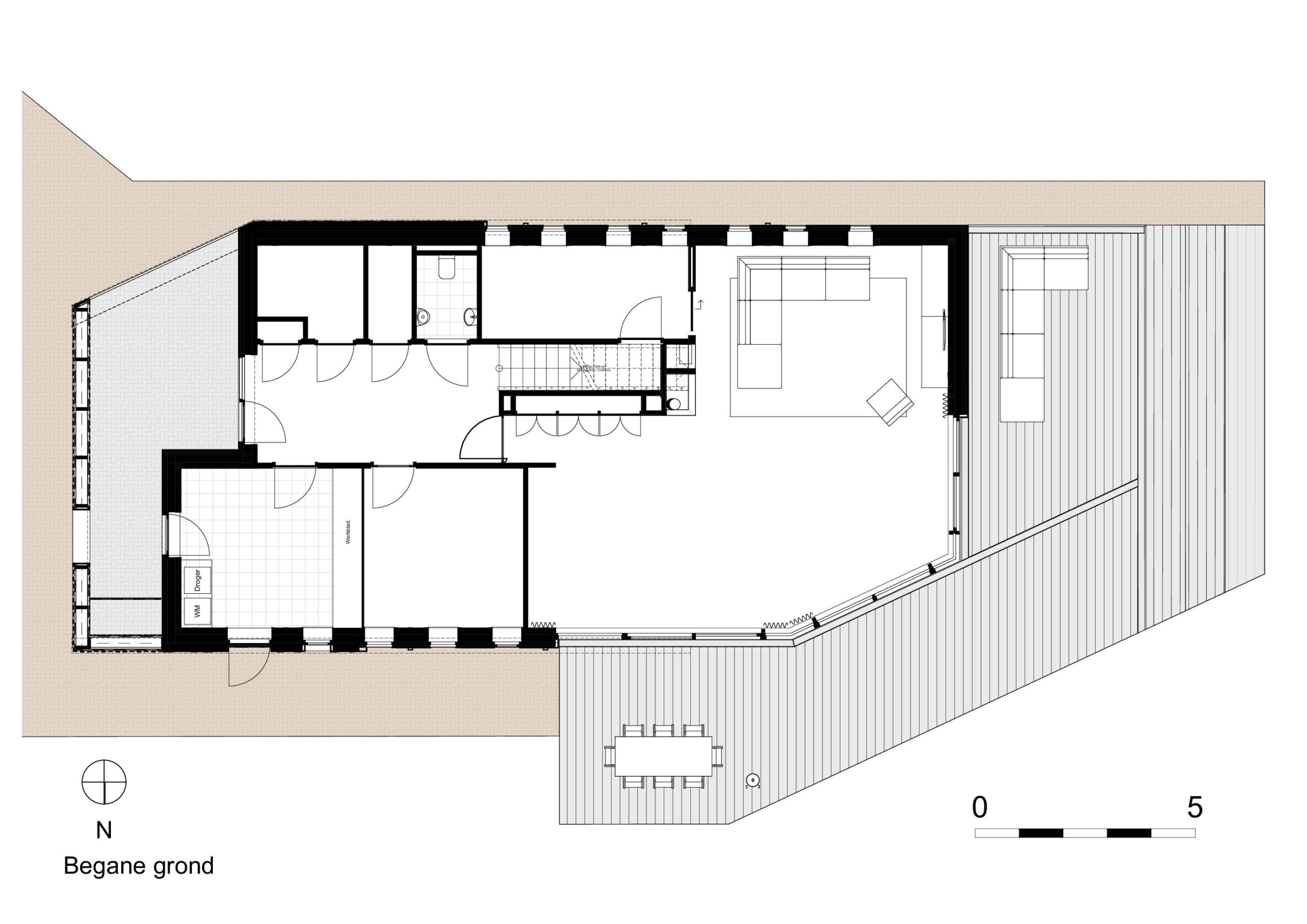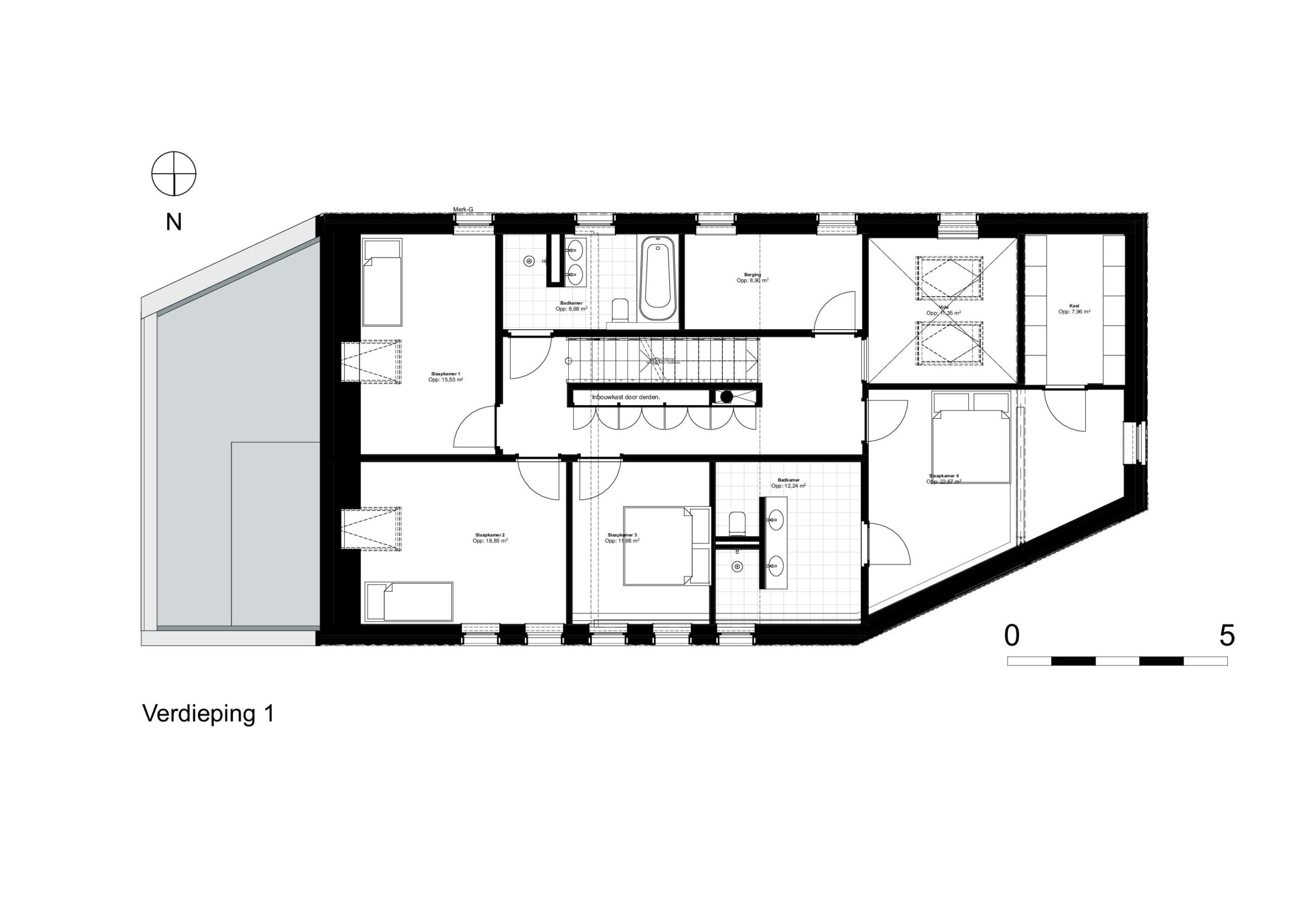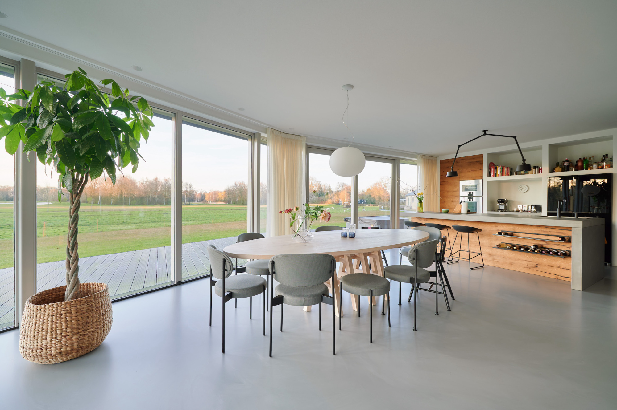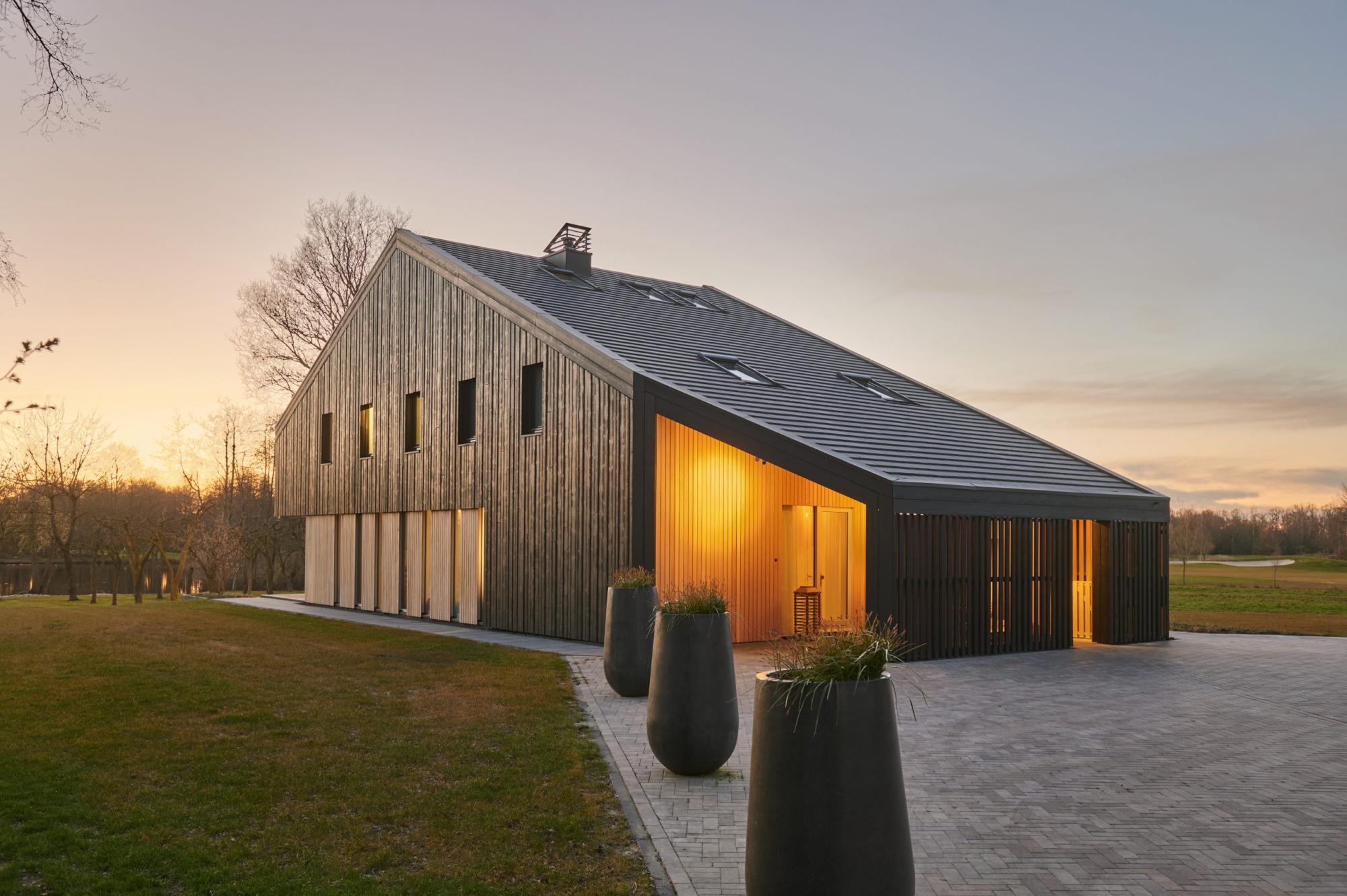De begane grond is aan de oostzijde nagenoeg geheel opengewerkt en biedt een fantastisch zicht op de golfbaan en het bos van Ype in de verte. Juist naar de openbare weg is de woning meer gesloten om de privacy te waarborgen. De typisch kapvorm beweegt mee met het functionele interieur met een sterk oog voor duurzaamheid en circulair materiaal gebruik.