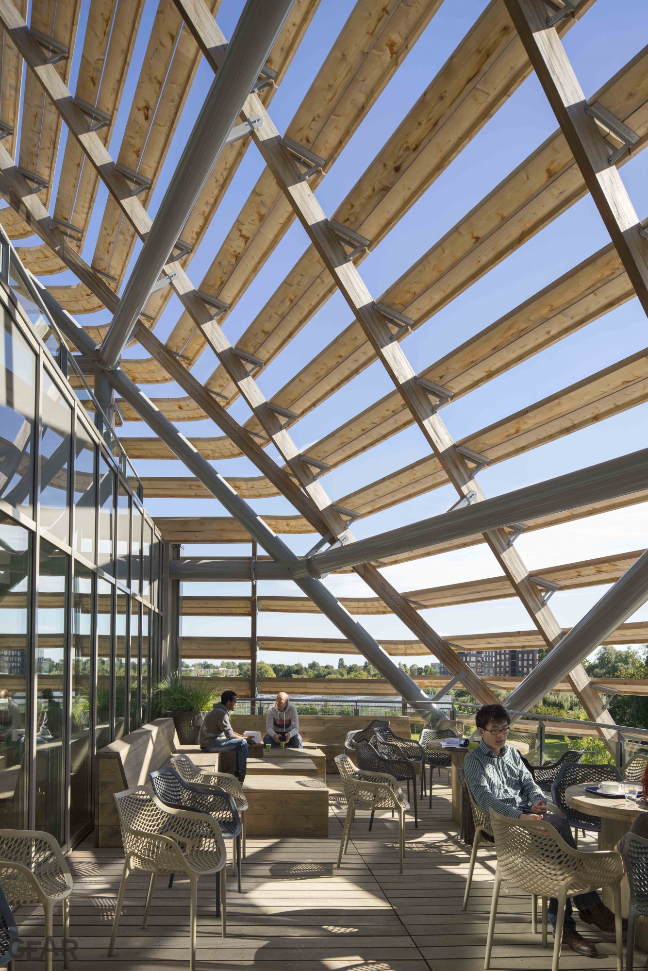 Met name de duurzame prestaties van de gevel bepalen het functionele aspect ervan: de permanente houten zonwering en daglichtsturing gaat oververhitting tegen en kaatst gefilterd daglicht naar binnen. Daarnaast zorgt de gevel voor een hoge isolatiewaarde en speelt een belangrijke rol in de natuurlijke ventilatie van de hoogwaardige onderzoeksfaciliteiten, kantoren en laboratoria die zich binnen bevinden. Een atrium geeft licht en lucht in het hart van het gebouw en vormt de centrale ontmoetingsplek: een driedimensionaal kruispunt van zichtassen, bruggen en overlegplekken.