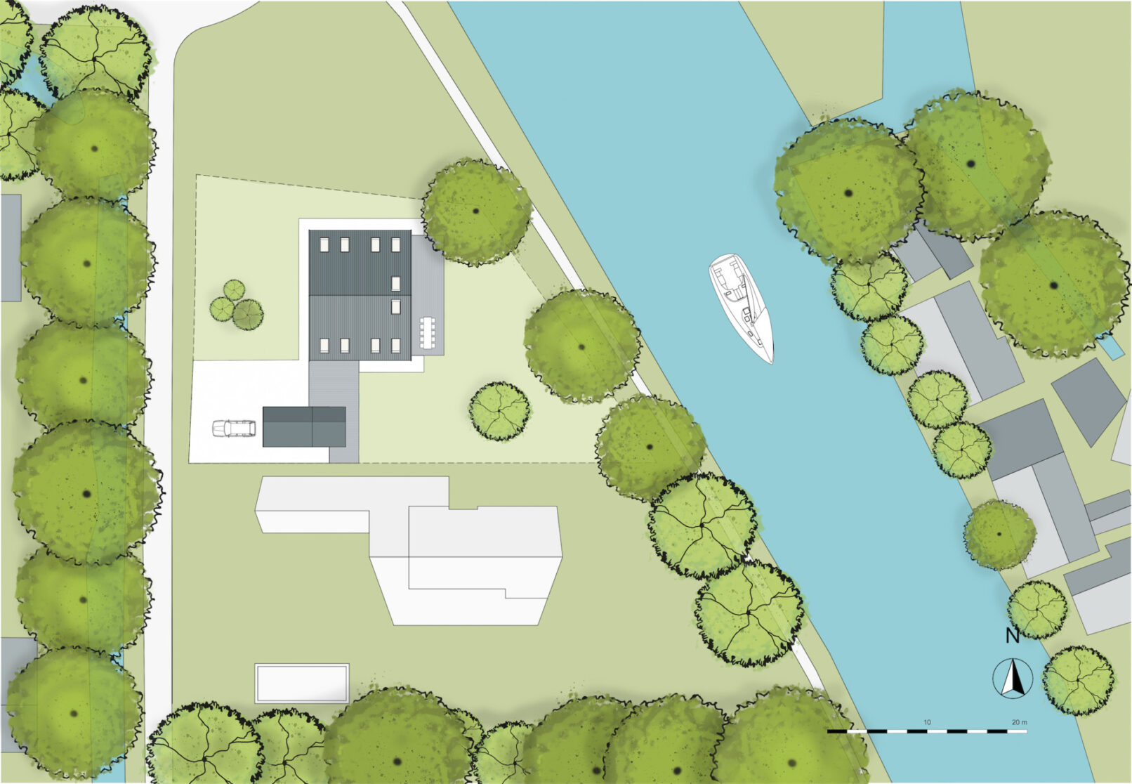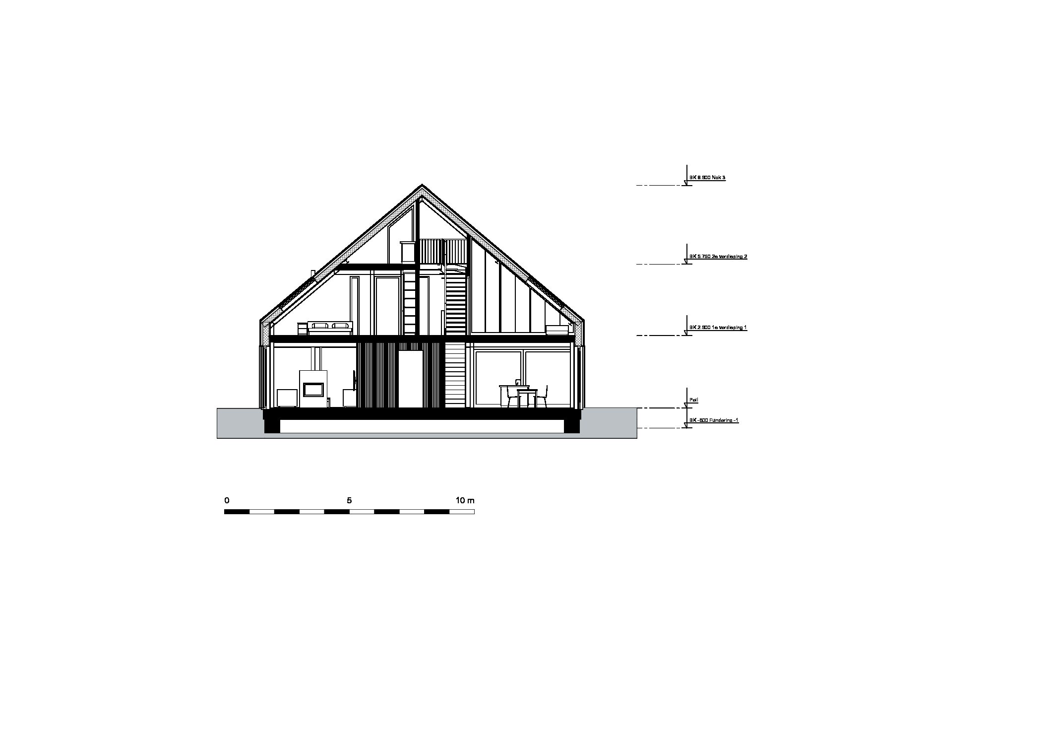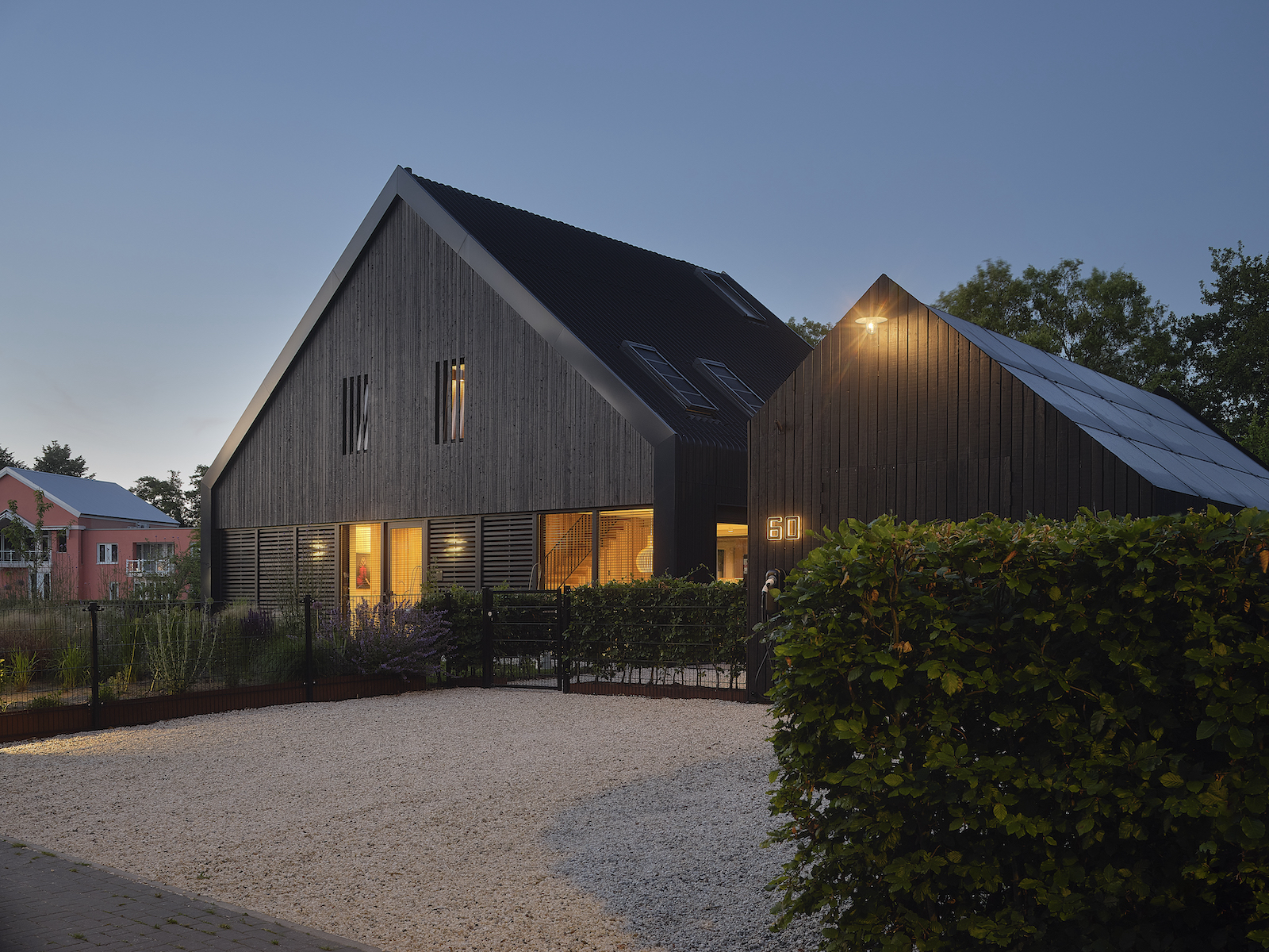 Het ontwerp van de woning is geïnspireerd op de botenhuizen langs de rivier de EE en de schuren aan het water. Deze woning is een toonbeeld van efficiënt ontwerp waarbij zoveel mogelijk prefab elementen en bouwmaterialen zijn gebruikt. Daardoor is er zeer weinig afval geproduceerd en verliep de bouw op locatie relatief snel.