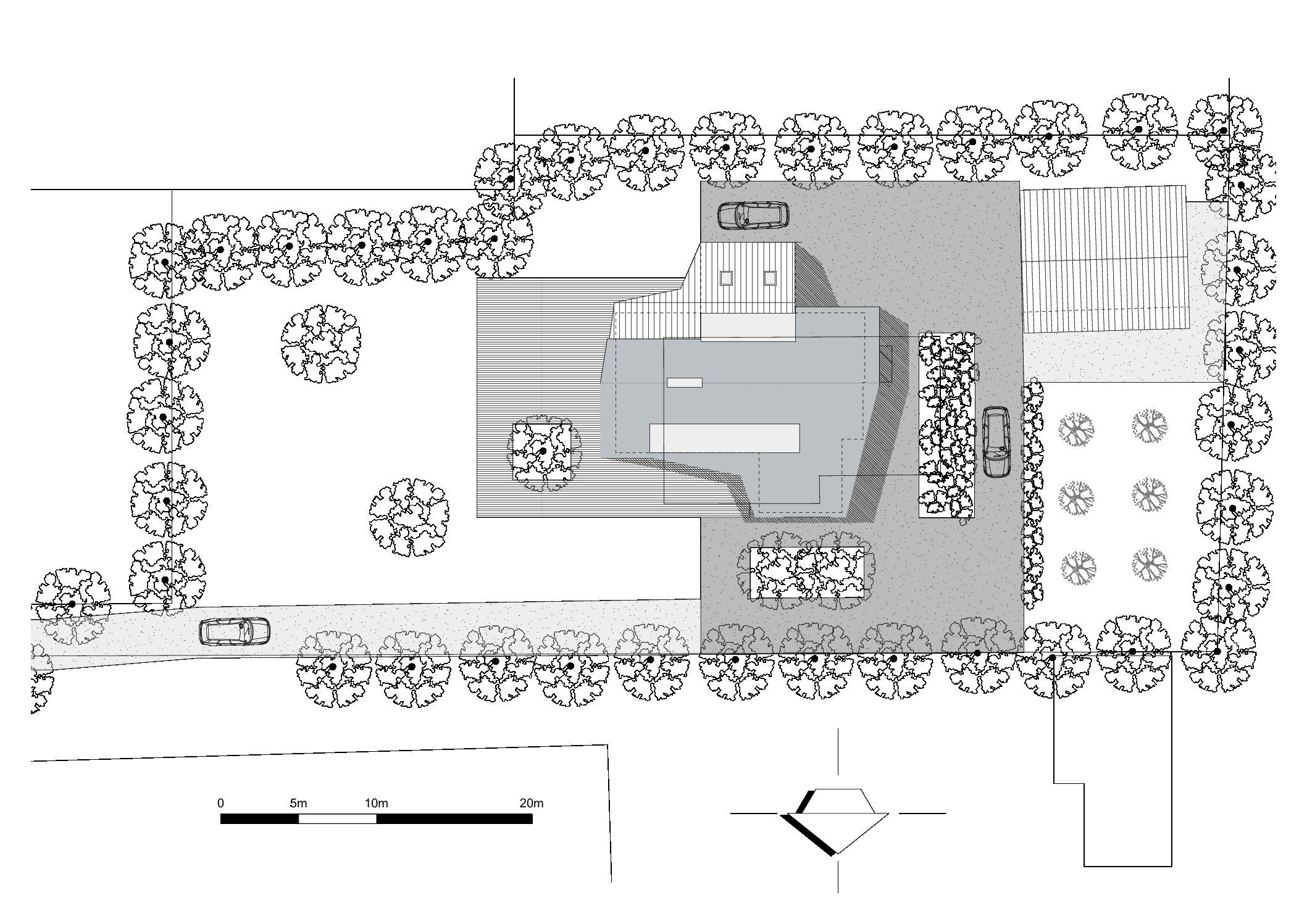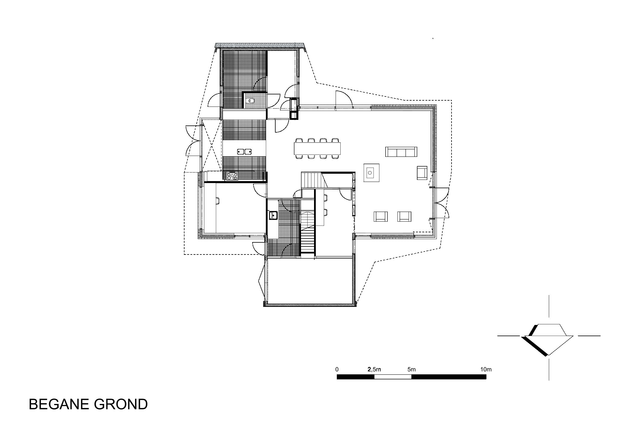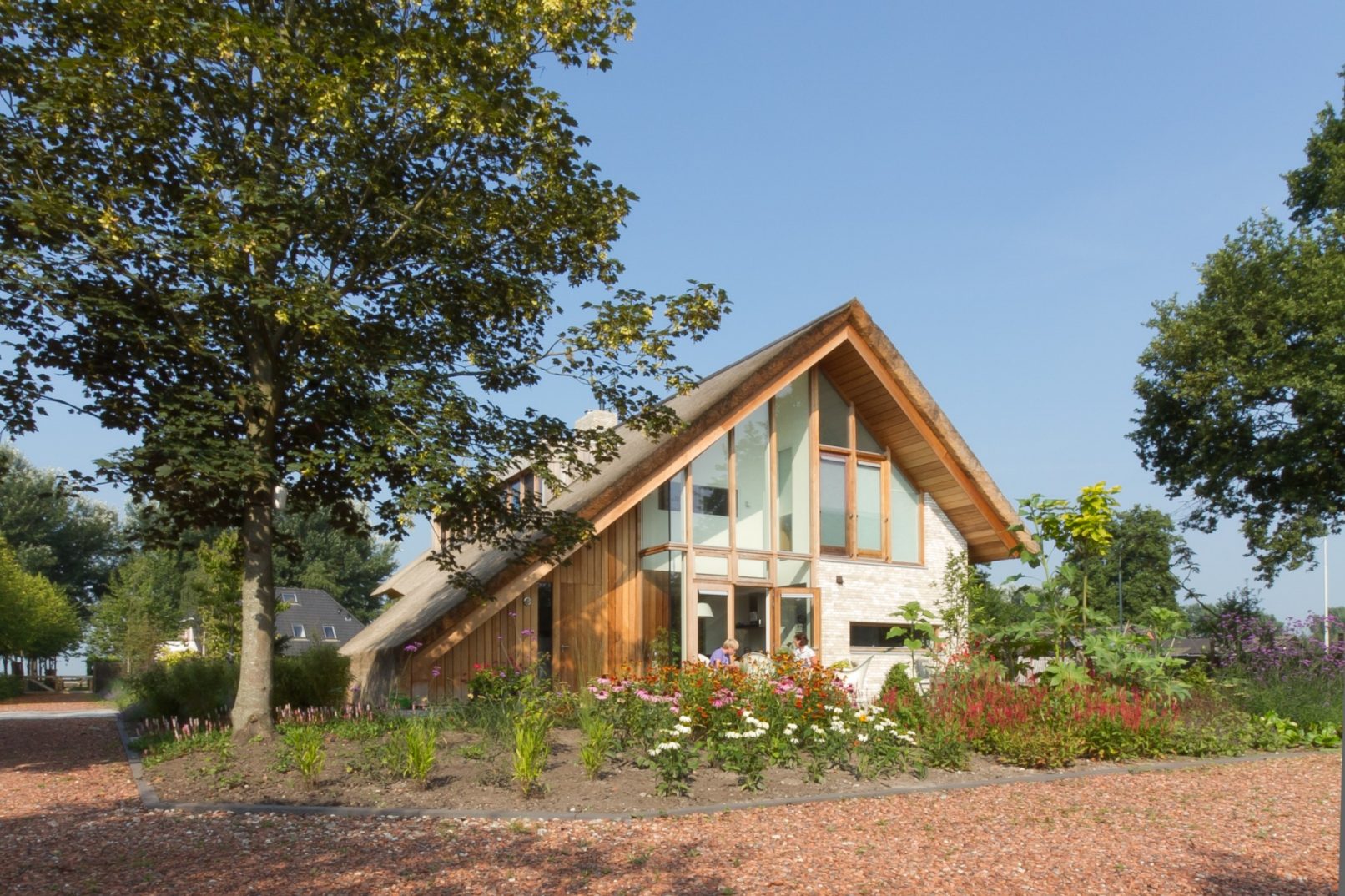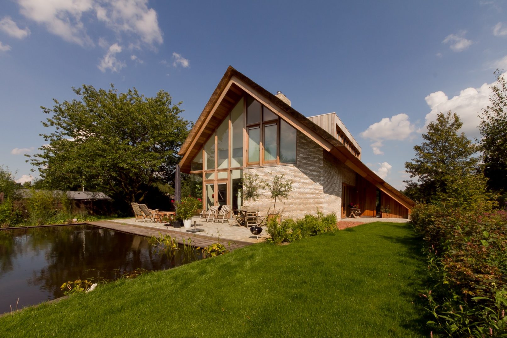 Deze villa ligt in zo’n tussenzone, iets verscholen achter een bestaande woning, tegen de rietranden van de Piccardhofplas. Het plan is zo vanzelfsprekend mogelijk ingepast in deze karakteristieke landschappelijke omgeving. De woning zelf is daardoor als rieten schuur ontworpen en de gevels zijn voor het grootste deel bekleed met onbehandelde houten delen. Het basisprincipe van het plan is een rechthoekige plattegrond met een grote woonkamer en leefkeuken beneden en verschillende slaapkamers op de verdieping. De hoofdentree met fietsenberging en de achteringang met garage zijn uit het volume ‘geschoven’ waarbij we de rieten kap hebben opgerekt, zodat ze dominanter wordt, richting benadrukt en het landschap versterkt.