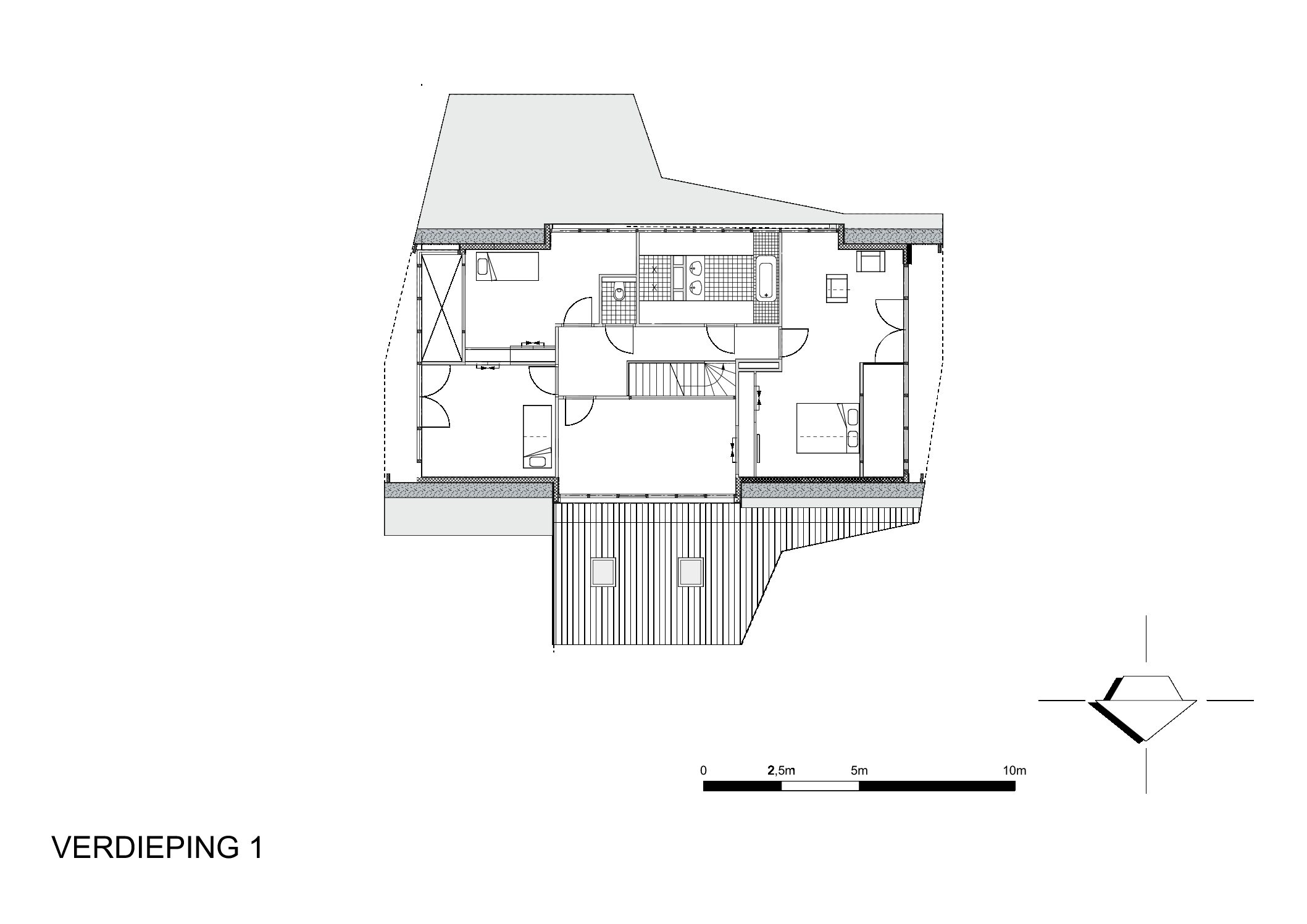 De woning is Oost-West georiënteerd, op de Ter Borchlaan en de Piccardhofplas, met aan beide kopgevels gevelopeningen die als grote gebaren van begane grondvloer tot aan de nok lopen. Achter deze hoge puien bevinden zich vides, die het interieur licht en ruimtelijk maken. Het interieur is strak en modern en steekt mooi af tegen de landschappelijke buitenzijde van de woning, die overal zichtbaar en voelbaar is door grote glasstroken.