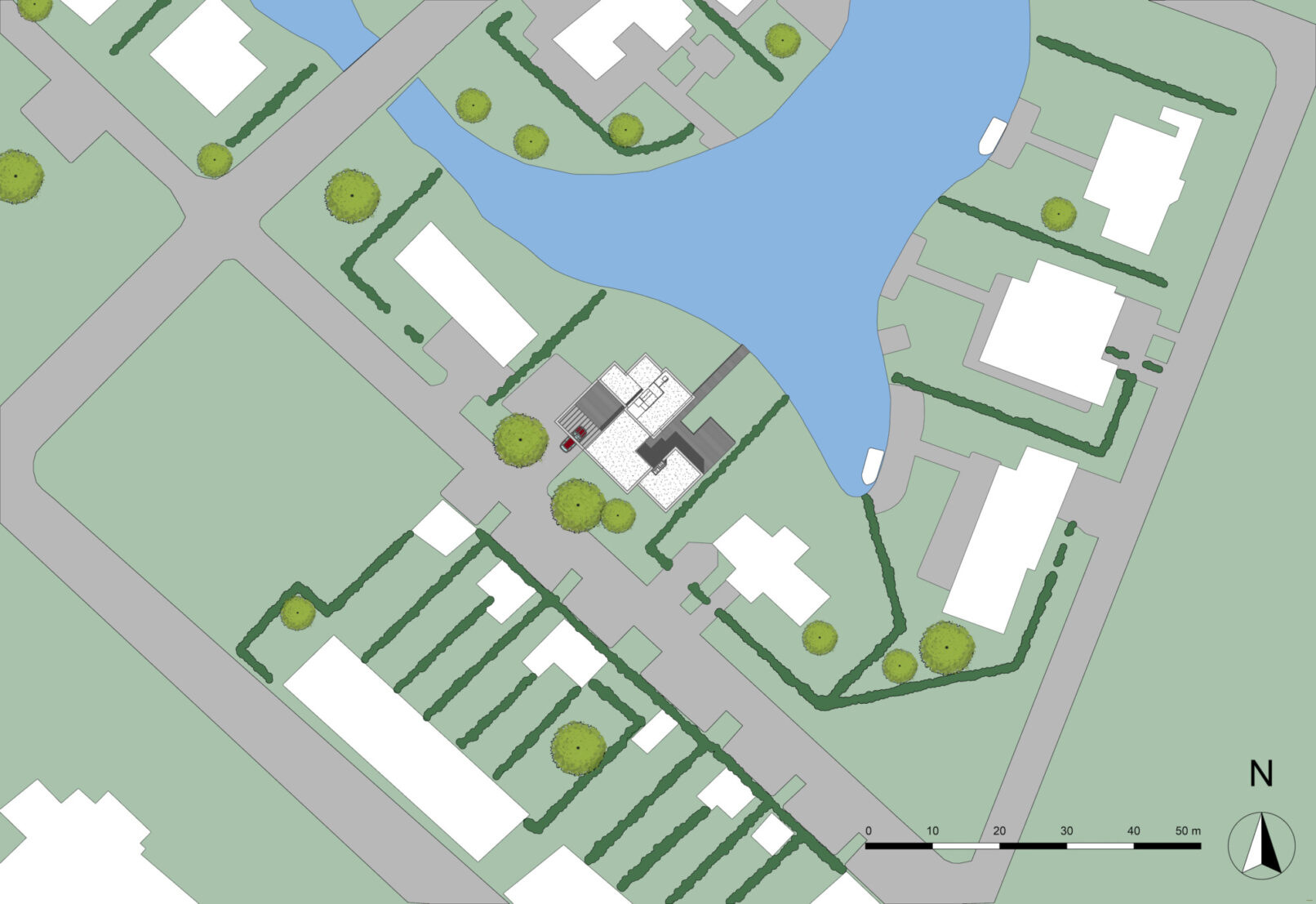 De nieuwe wijk Oudvaart in Sneek is bedacht voor bijzondere woningbouw aan het water. Natuurlijke oevers vormen de grens tussen waterlandschap en tuinen. De bedoeling is optimaal gebruik te maken van de ligging aan het water en het uitzicht daarop. In belangrijke mate hebben de landschappelijke kwaliteiten die deze nieuwe wijk krijgt, uitgangspunt gevormd voor deze woning. Zo is voor een horizontale geleding gekozen. Daarnaast worden verrassende uitzichten en doorkijken gevormd en is een op de natuurlijke omgeving afgestemd materiaal- en kleurgebruik toegepast.