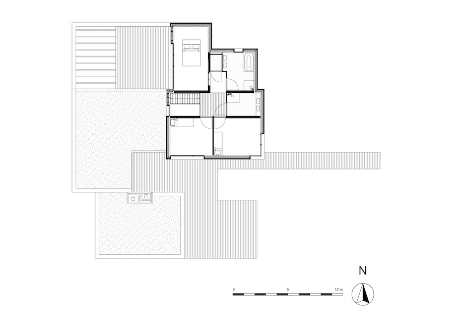 De bedoeling is door middel van doorkijken, daklichten en lichtvensters, een spel te spelen met buiten en binnen. Dit wordt hier bereikt door het gehele woonvolume uit elkaar te trekken in afzonderlijke programma-onderdelen, naar wens van de opdrachtgever. Gevolg van deze ingrepen is een onregelmatig kubistisch hoofdvolume. Op deze manier wordt licht op vele verrassende manieren binnengehaald. De entreehal met trap vormt de kern waaraan alle programma’s ontsloten zijn. Een groot daklicht brengt daglicht tot diep in deze kern, zodat diverse ruimtes van buiten en van binnenuit daglicht krijgen.