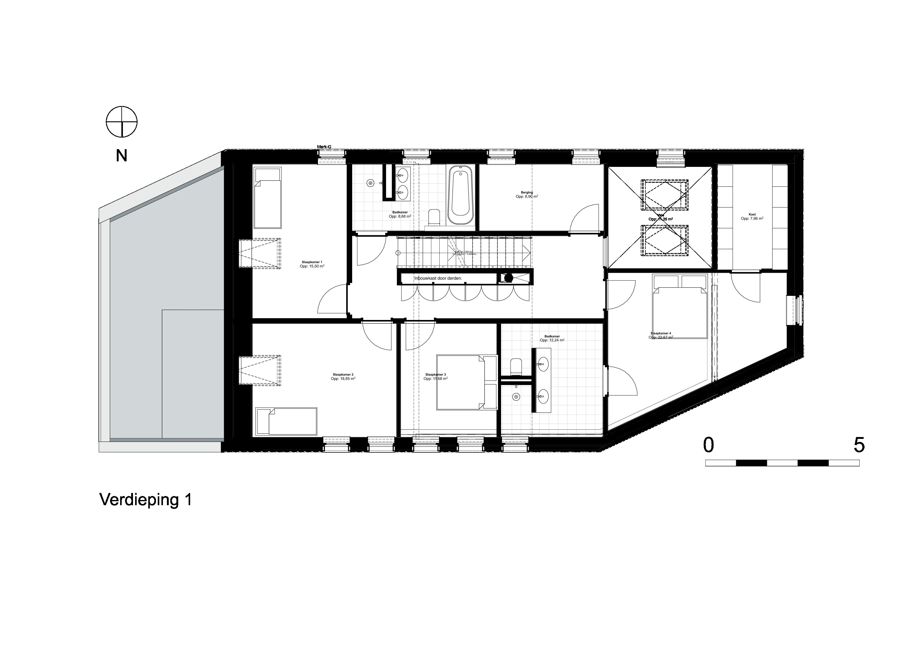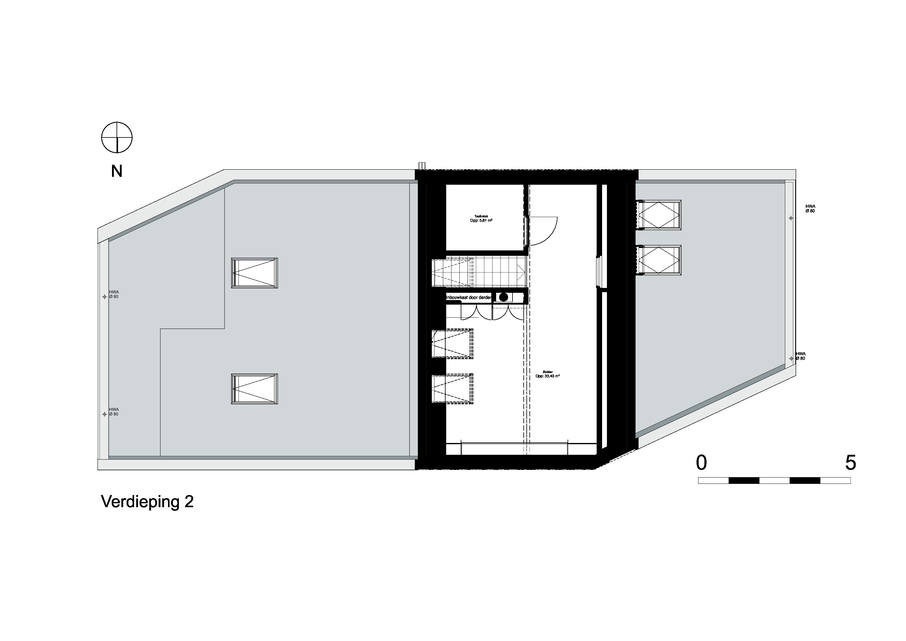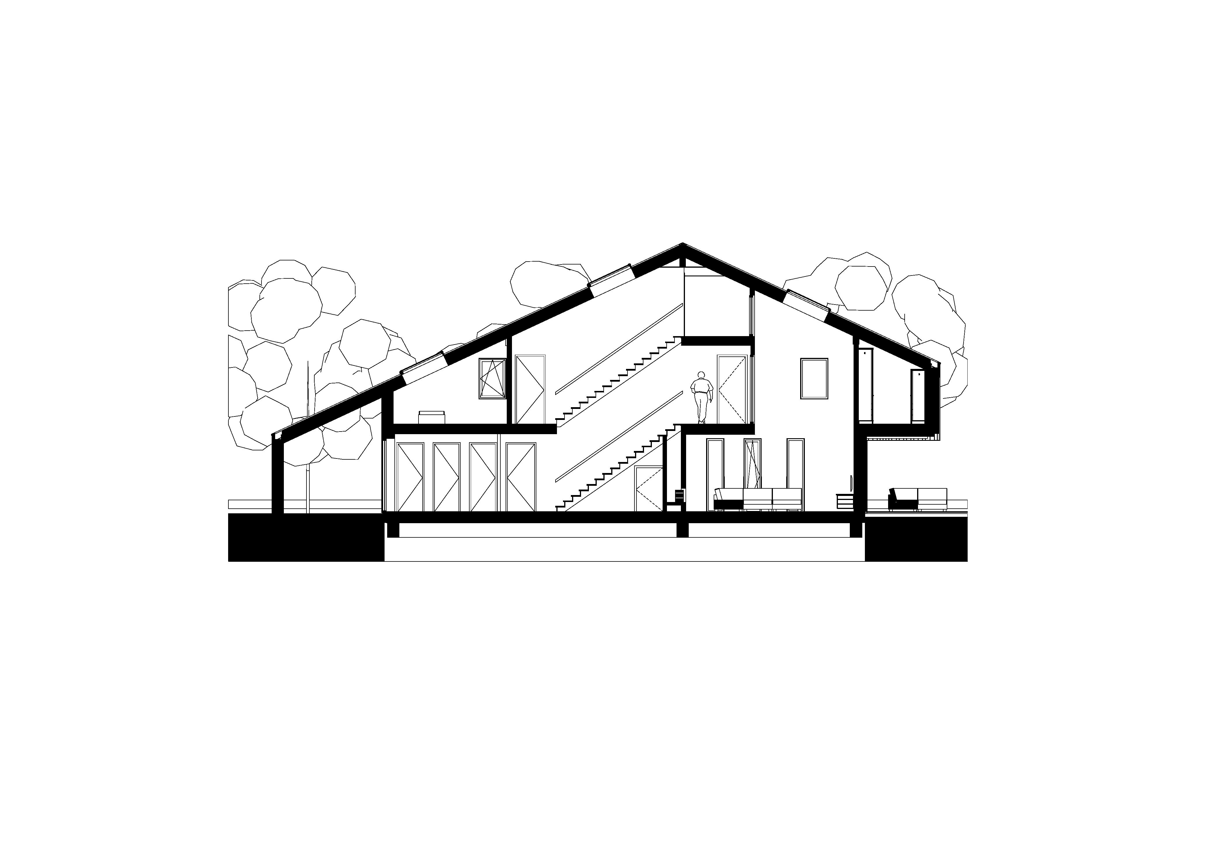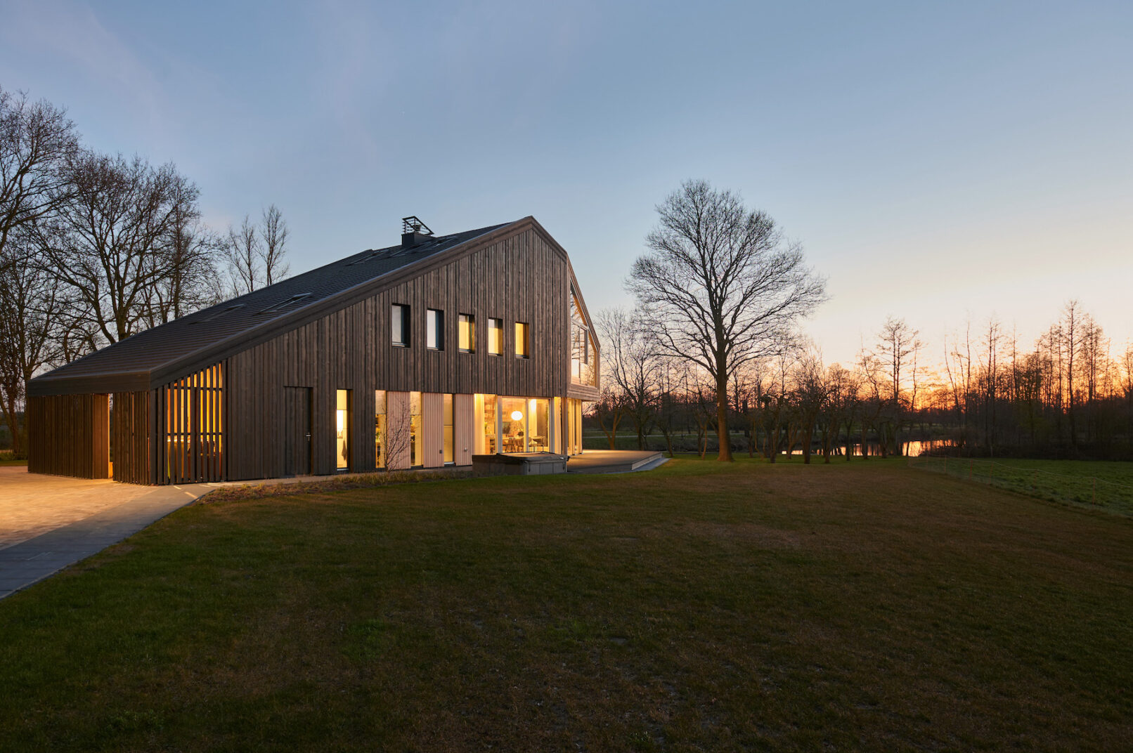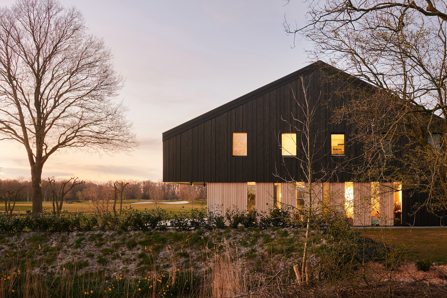 De begane grond is aan de oostzijde nagenoeg geheel opengewerkt en biedt een fantastisch zicht op de golfbaan en het bos van Ype in de verte. Juist naar de openbare weg is de woning meer gesloten om de privacy te waarborgen. De typisch kapvorm beweegt mee met het functionele interieur met een sterk oog voor duurzaamheid en circulair materiaal gebruik.